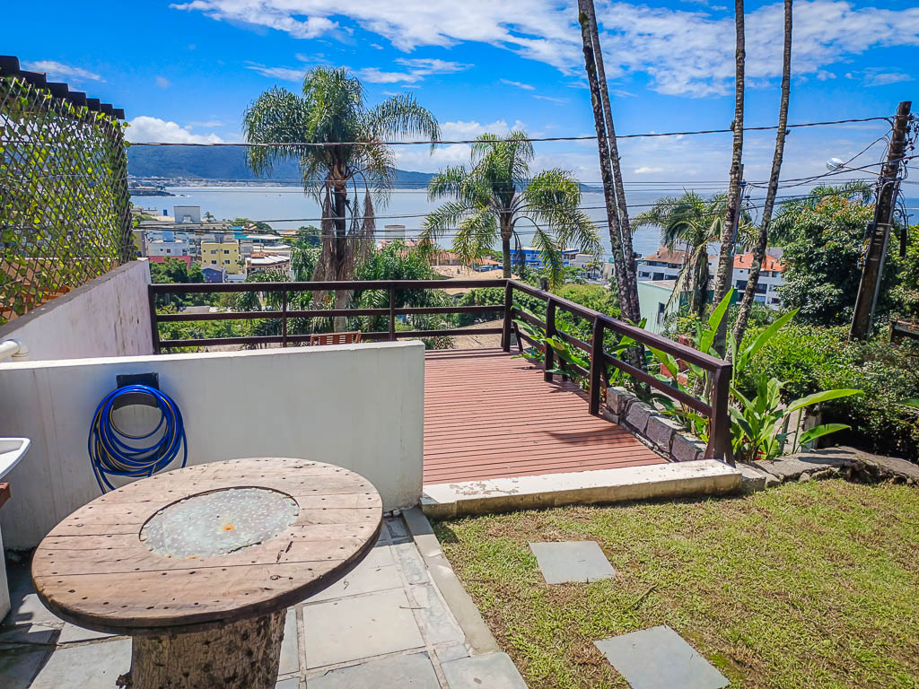 Na frente do chalé, você encontrará um amplo deck com espaço suficiente para reunir família e amigos. Aproveite para desfrutar da brisa do mar enquanto aprecia a paisagem de tirar o fôlego.